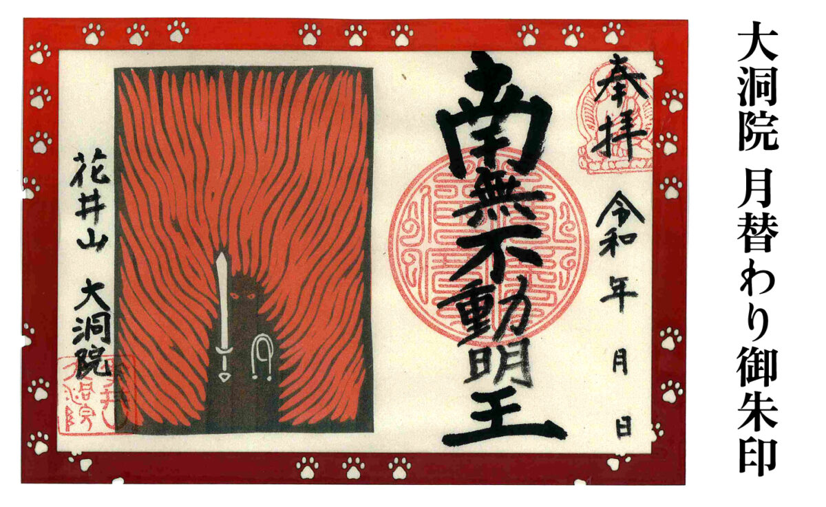 御朱印 2025.11.30 令和7年12月 月替わり御朱印 令和7年12月 月替わり御朱印 令和7年の月替わり御朱印は、東葛地域で活動する版画家・大野隆司さんが毎月描き下ろすオリジナル版画を使用した見開き御朱印です。 12月1日より寺務所でお渡しします。お声掛けください。 11月21日~12月14日 大洞院拓本展