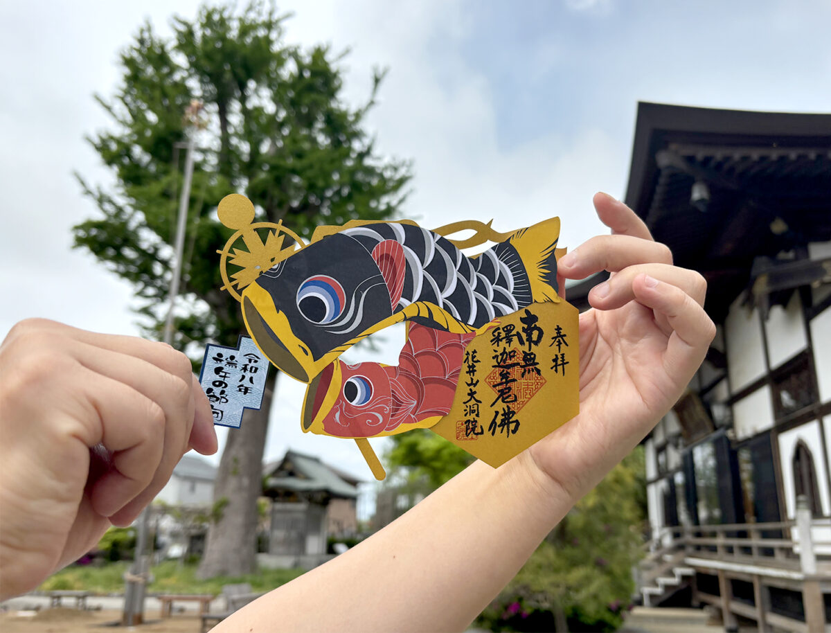 御朱印 2026.04.21 期間限定切絵御朱印「端午の節句」 頒布開始 4月21日~5月末日まで、切り絵御朱印「端午の節句」を寺務所で頒布いたします。 大洞院境内では、毎年4月中旬から鯉のぼりを上げて、子供たちの健康を祈願しています。 参拝の際は、空を泳ぐ鯉のぼりを楽しみながら、散策ください。 大洞院ギャラリー「大野隆司とお寺」 4月11日~5月17日