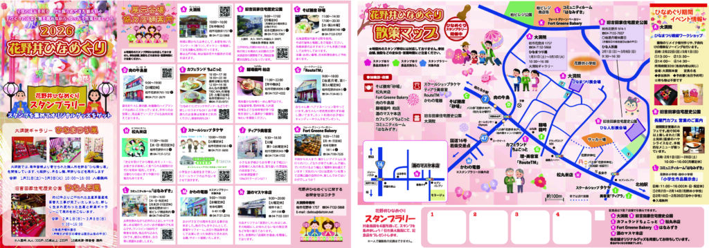 ひなめぐりの際は、施設・店舗の営業時間・定休日を確認の上、参加ください。 - ひなめぐりのパンフレットはどこで配布していますか?